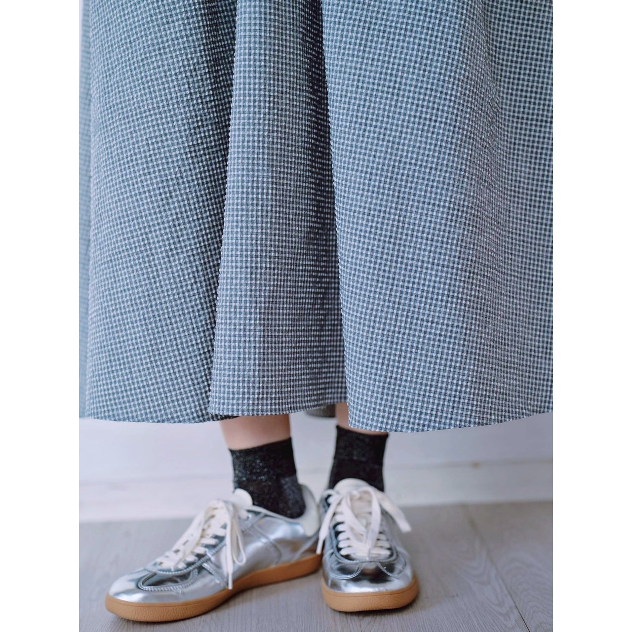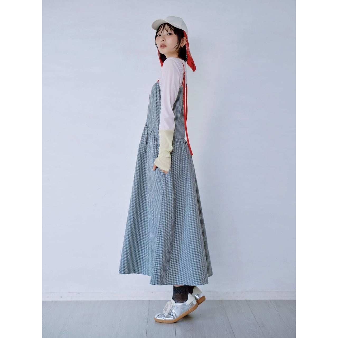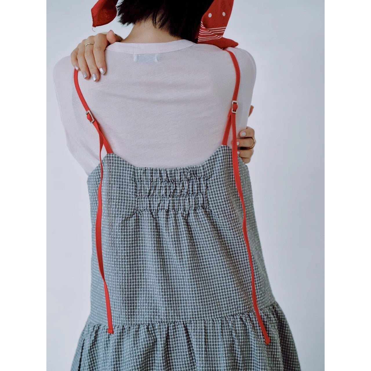 細かなチェック柄に配色肩紐が映えるキャミワンピース。