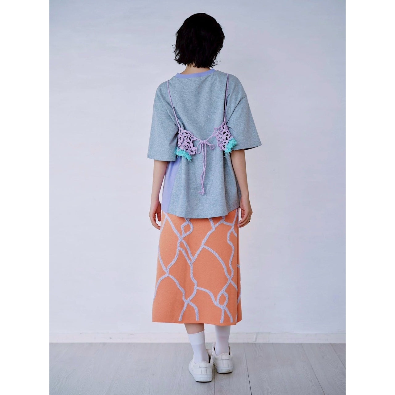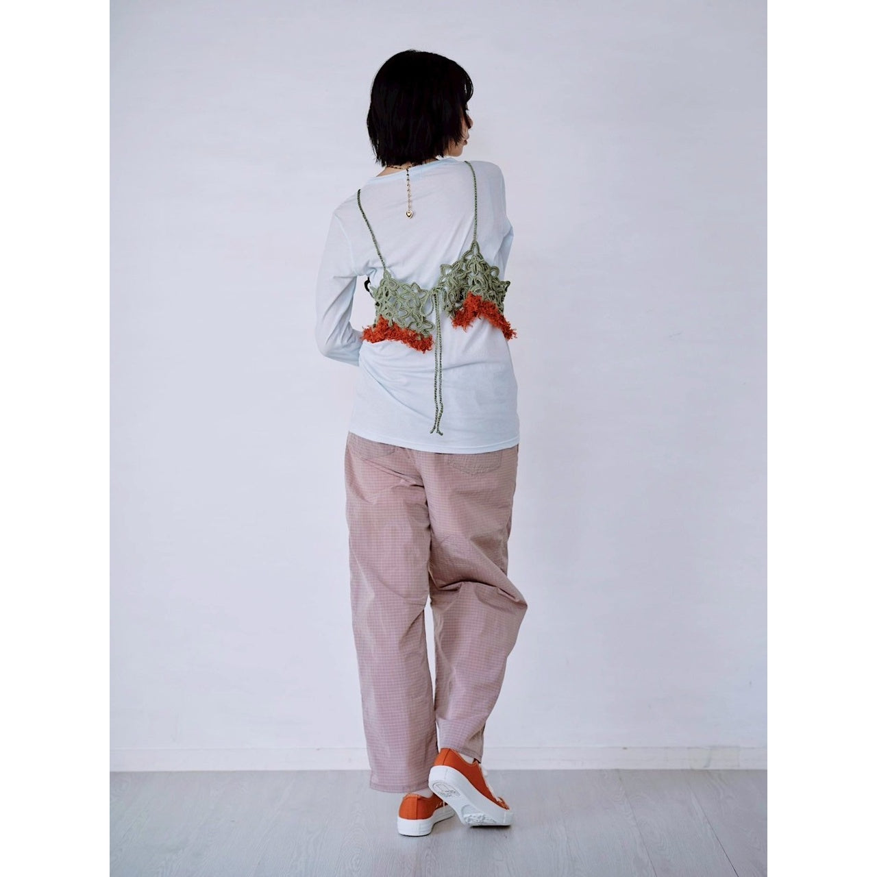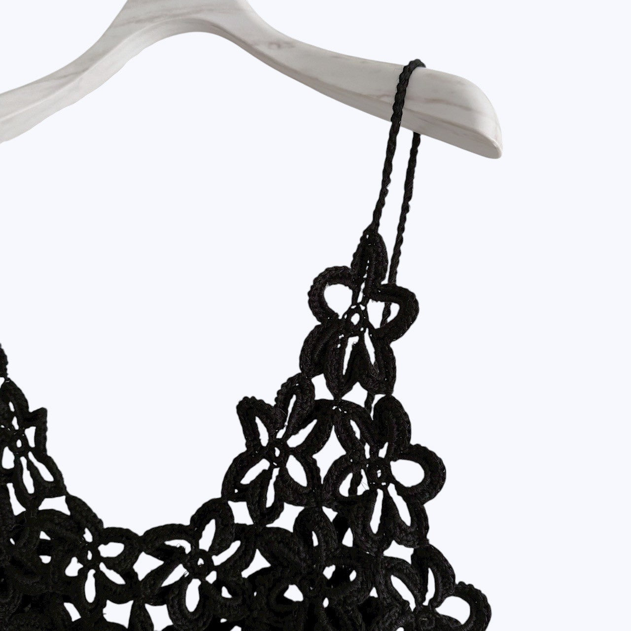 クロシェ編みで仕立てたビスチェ。