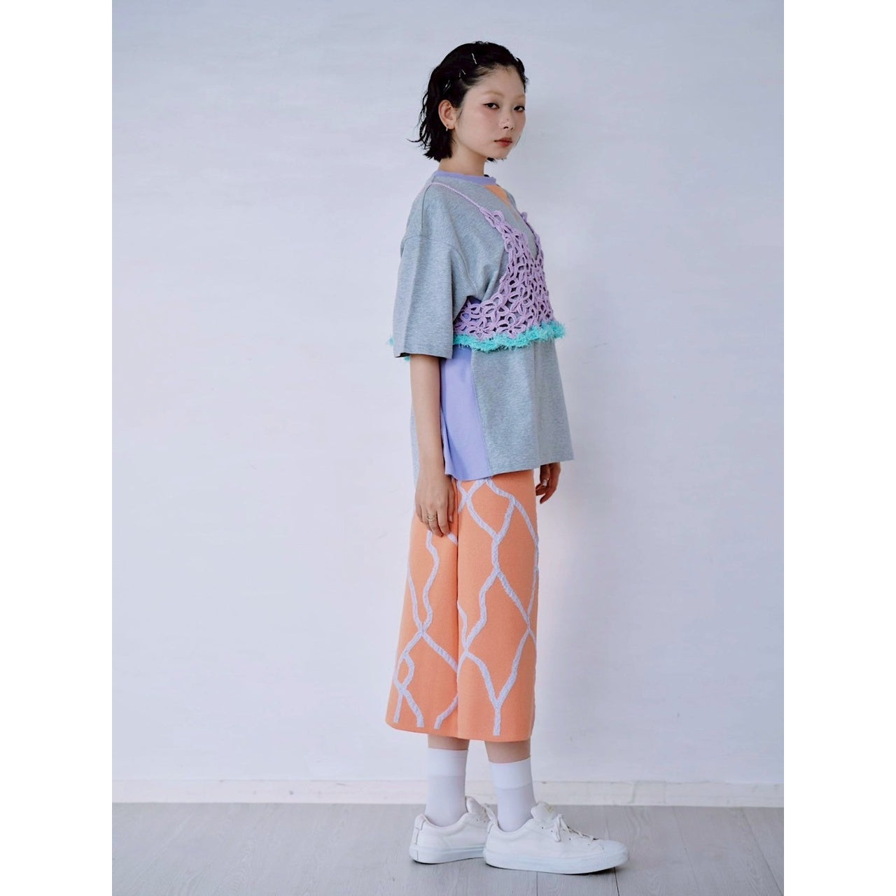 裾にファンシーヤーンを使用し、表情のある仕上がりに。
